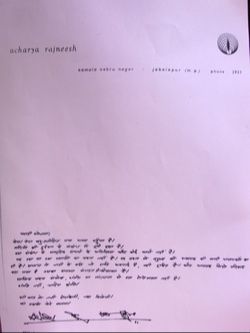 ここにご紹介するのは、上記の出版本には記載されていないOshoがショバナに宛に送った手紙の一部です。